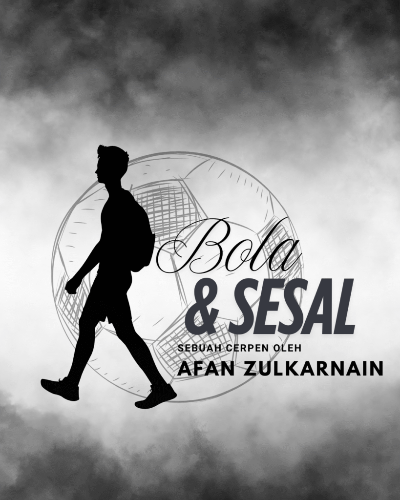 Tiba-tiba, Novan angkat bicara. Ide bermain bola terlintas di kepalanya. Serentak kami berempat keluar dari warung menuju jalanan berpaping yang kerap dijadikan tempat joging. Kami saling mengoper satu sama lain dan berebut memasukkannya ke gawang buatan yang dibuat dari sepatu-sepatu kami yang baunya menyengat.