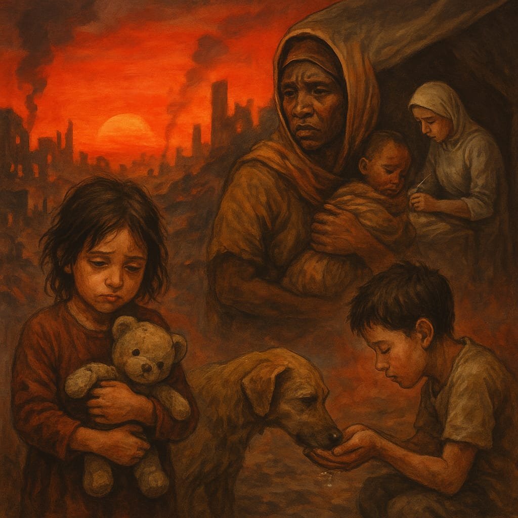 di pelukan ibu yang memeluk siapa pun yang tersisa.