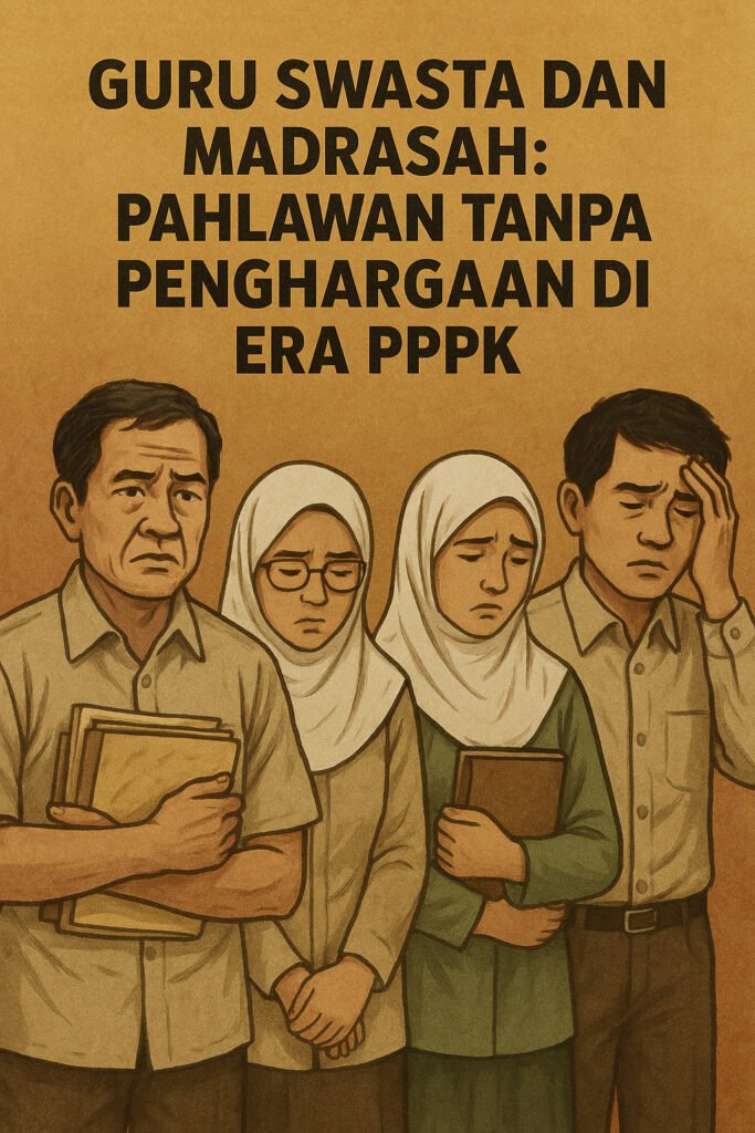 Di tengah gegap gempita seleksi Pegawai Pemerintah dengan Perjanjian Kerja (PPPK) bagi guru di sekolah negeri, ada satu kelompok yang seolah dilupakan oleh sistem: guru swasta, terlebih lagi guru madrasah swasta non-sertifikasi. Mereka adalah sosok pendidik yang tak kalah penting, yang saban hari tetap mengabdi tanpa kepastian kesejahteraan. Ironisnya, saat negara gencar “menyejahterakan” guru-guru ASN dan PPPK, para guru swasta seolah jadi penonton di negeri sendiri.