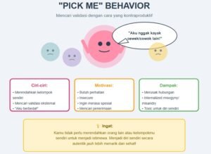 Fenomena “pick me” adalah cerminan rumit dari dinamika sosial, tekanan gender, dan pencarian identitas di era modern. Meskipun perilaku ini dapat terlihat ringan atau bahkan lucu di permukaan, ia sebenarnya menunjukkan isu-isu yang lebih dalam tentang harga diri, validasi, dan bagaimana masyarakat membentuk pemahaman kita tentang gender dan nilai diri. Memahami fenomena ini penting bukan untuk menghakimi atau mengecam individu yang menunjukkan perilaku tersebut, tetapi untuk mendorong refleksi kolektif tentang bagaimana kita semua sebagai individu dan sebagai masyarakat—dapat menciptakan lingkungan yang lebih mendukung keaslian diri dan kesetaraan.