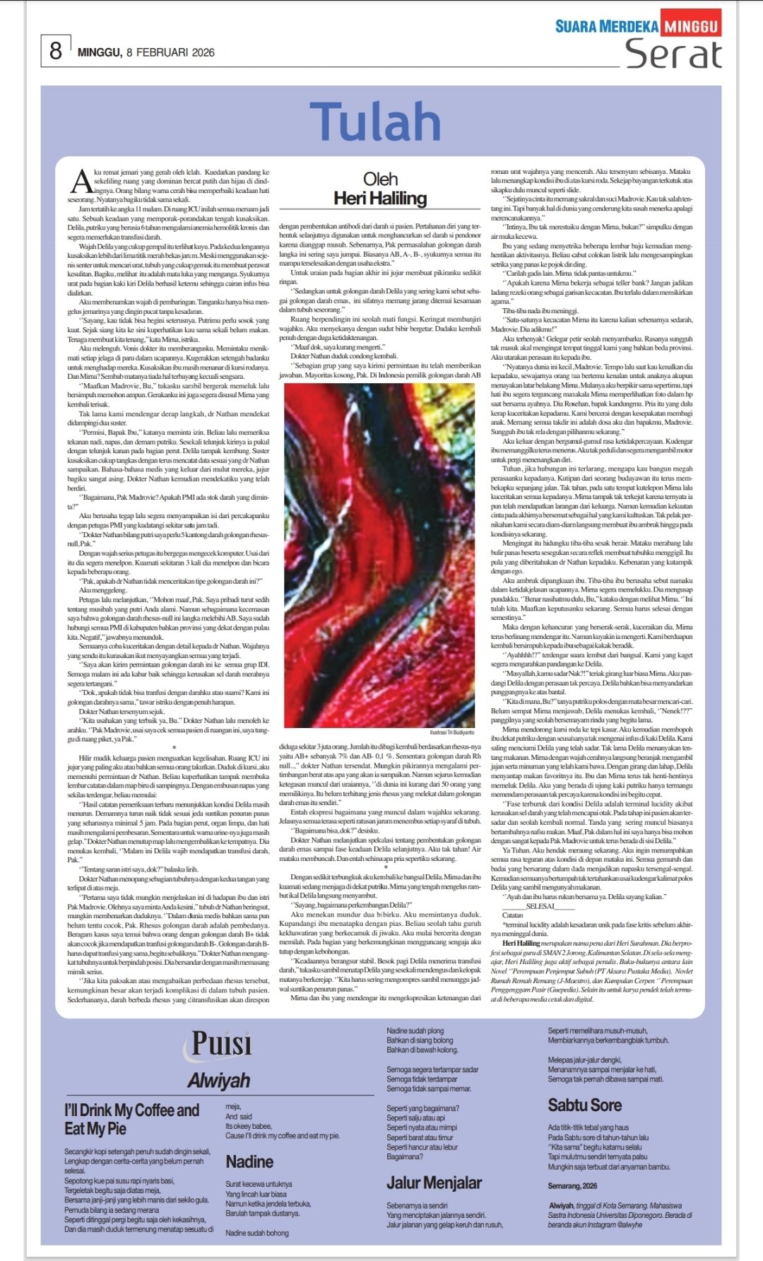 Secara keseluruhan, “Tulah” adalah cerpen yang kuat secara emosional dan tematik. Heri Haliling berhasil merangkai konflik personal dan universal menjadi sebuah narasi yang memukau dan meninggalkan kesan mendalam. Cerita ini bukan hanya sekadar kisah sedih, tetapi juga renungan tentang konsekuensi, dosa turunan, dan kegetiran hidup yang harus dihadapi dengan keberanian dan keikhlasan (IW.S).